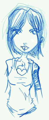 ok, who IS this girl? i see her in everrrrryyything you put on a page. that grungie, tatoo'ed gamine thing...who seems to be a bit of an idiot as well? i really like your blueline pencil stuff, patrick...has a weight of thought about her your digital draw can't catch up with. dunno, just me...